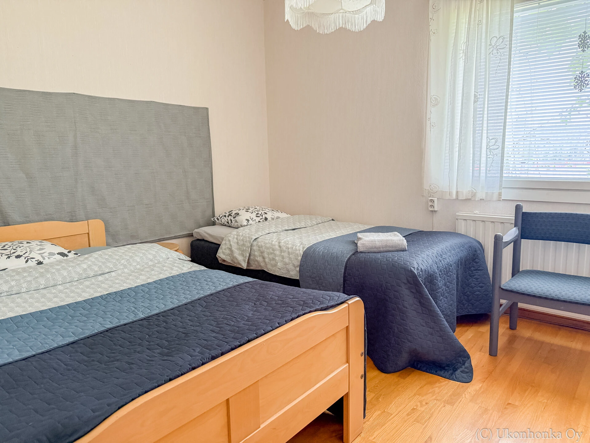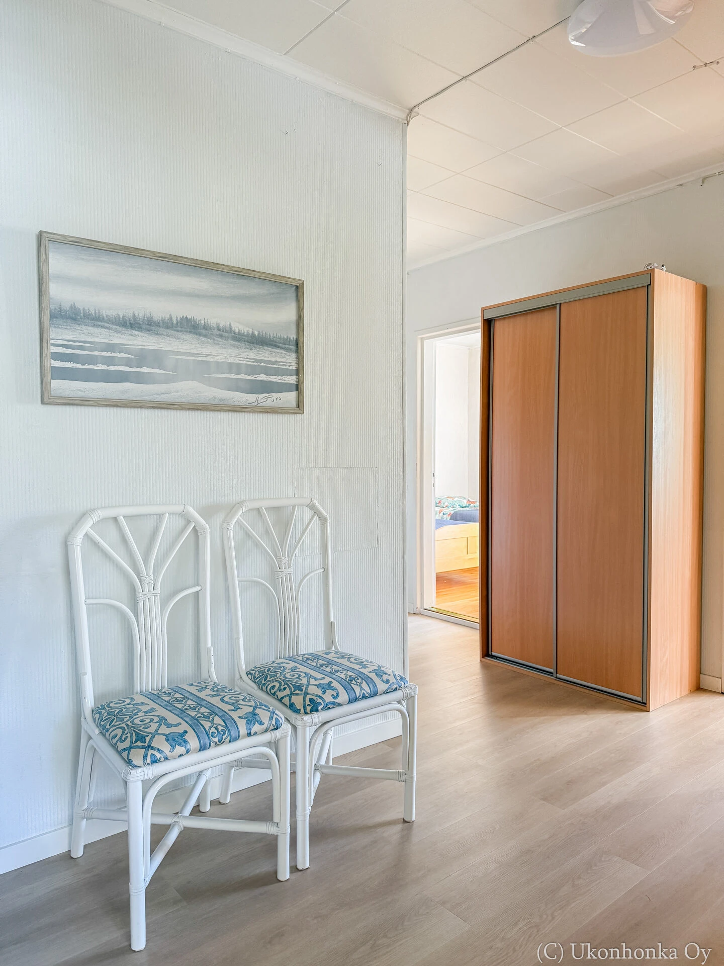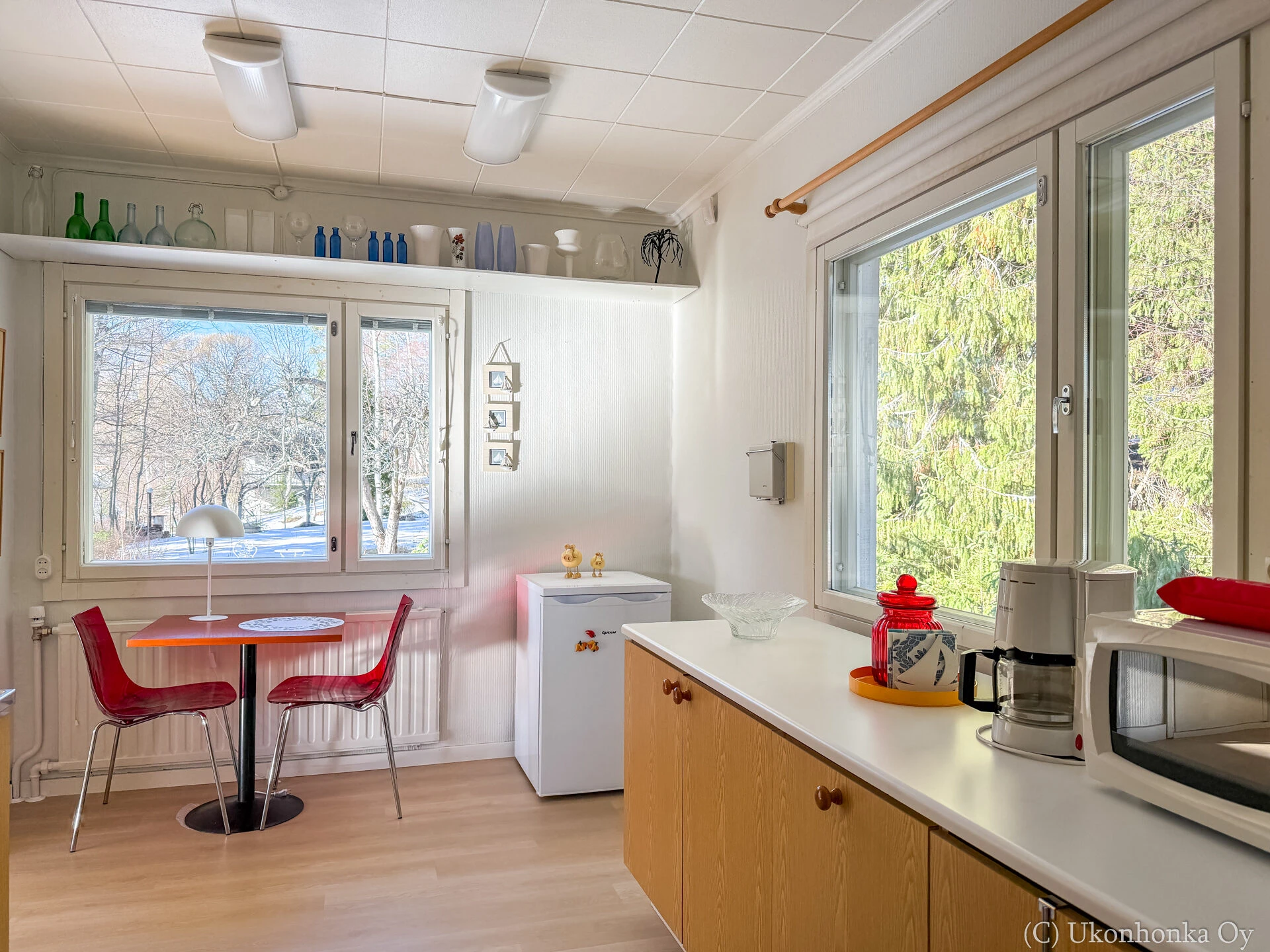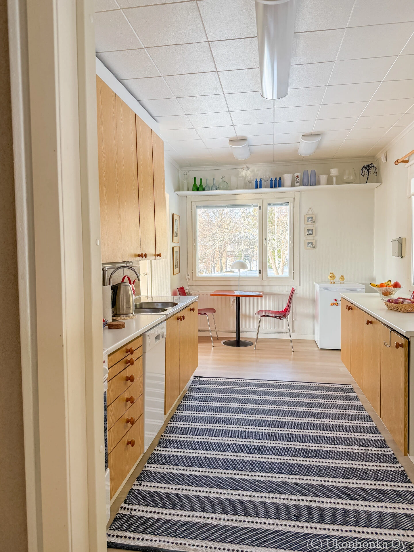 Ukonrinne is a detached house equipped with modern comforts and air conditioning, located in a peaceful residential area in the center of Puumala, within a short walking distance from the local services. The house is easily accessible by public transport, car, bicycle, etc., and it has its own yard and parking space. From the living room windows there is a partial view of the lake. The house is bright and cozy. There are sleeping places for four. Distance to the shore of Saimaa approx. 100 m. Services and Puumala marina 600 m away.
