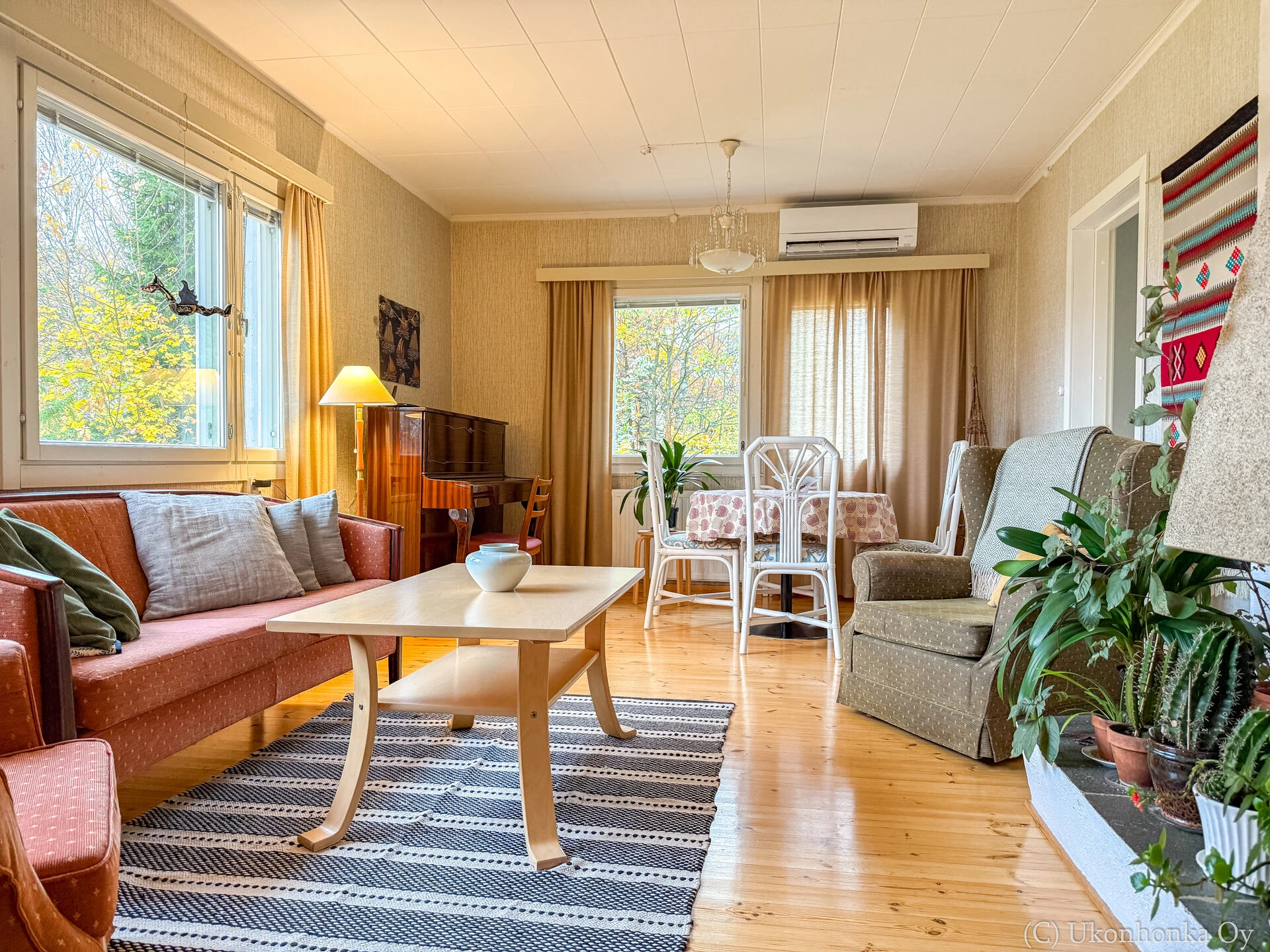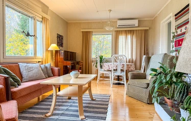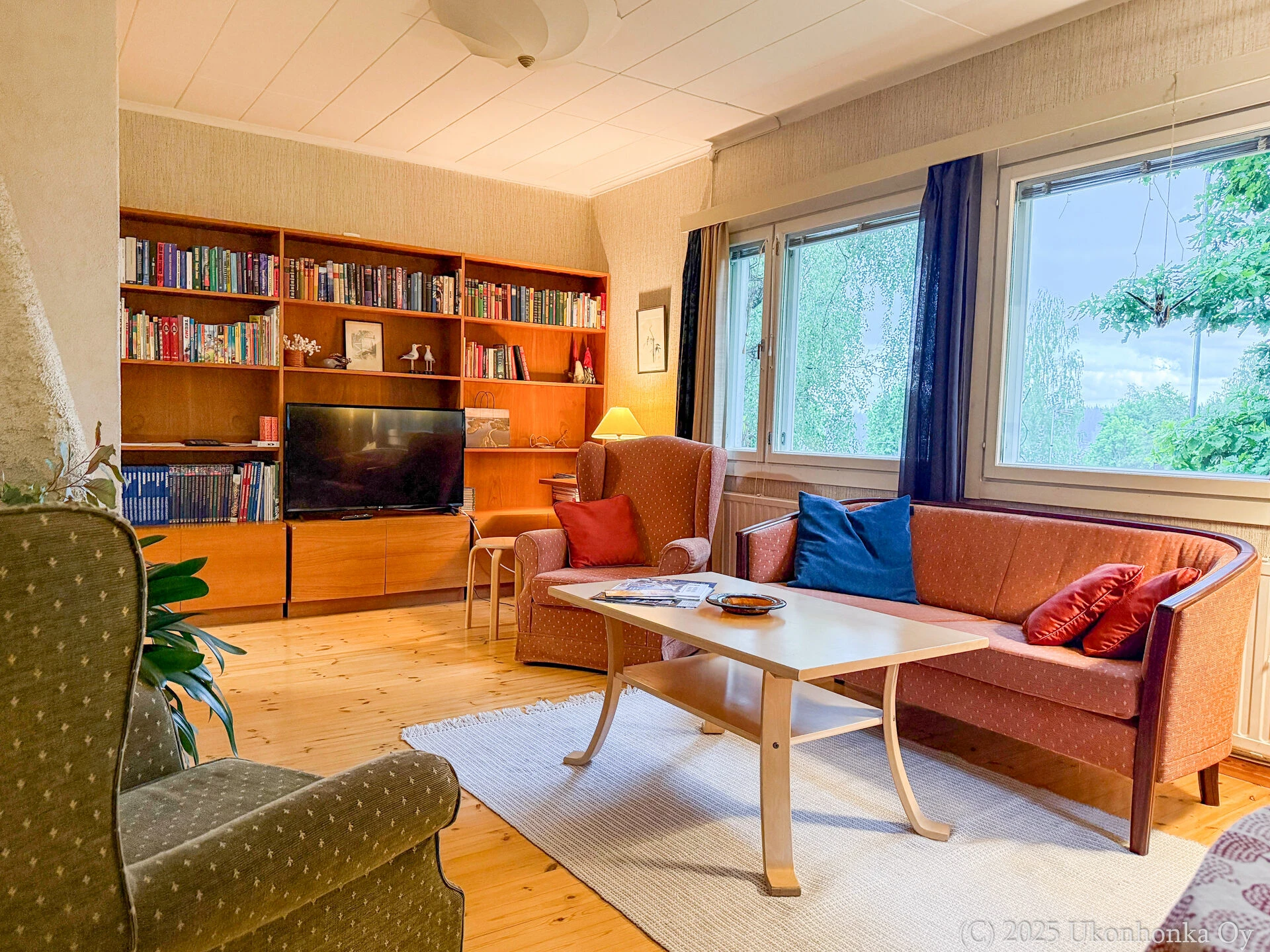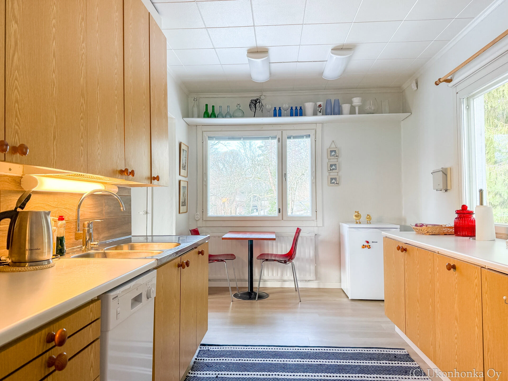 Ukonrinne is a detached house equipped with modern comforts and air conditioning, located in a peaceful residential area in the center of Puumala, within a short walking distance from the local services. The house is easily accessible by public transport, car, bicycle, etc., and it has its own yard and parking space. From the living room windows there is a partial view of the lake. The house is bright and cozy. There are sleeping places for four. Distance to the shore of Saimaa approx. 100 m. Services and Puumala marina 600 m away.