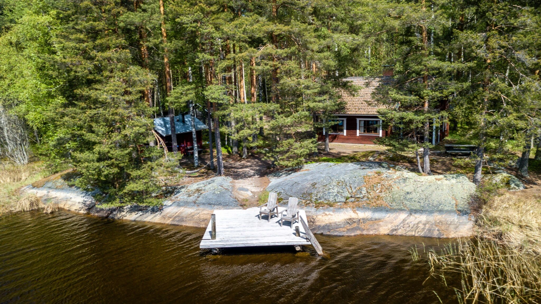 The location of Niemelä, it the end of a peninsula, offers great views to the lake Saimaa. The garden area surrounding Niemelä is flat and child-friendly. There’s a fire pit and a terrace with a 6-piece dinette at the yard.