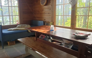 Taiga-retkitilan järvimökissä melojan unelmamaisemissa voi majoittua luonnon helmassa 1-4 henkilöä.