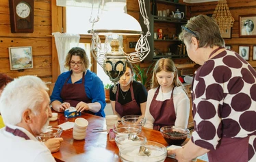 Lopuksi juodaan teet/kahvit ja syödään yhdessä savolaisia mustikkakukkoja vaniljakastikkeen kera. Saat mukaasi reseptin ja taidon tehdä itse omia mustikkakukkoja!
