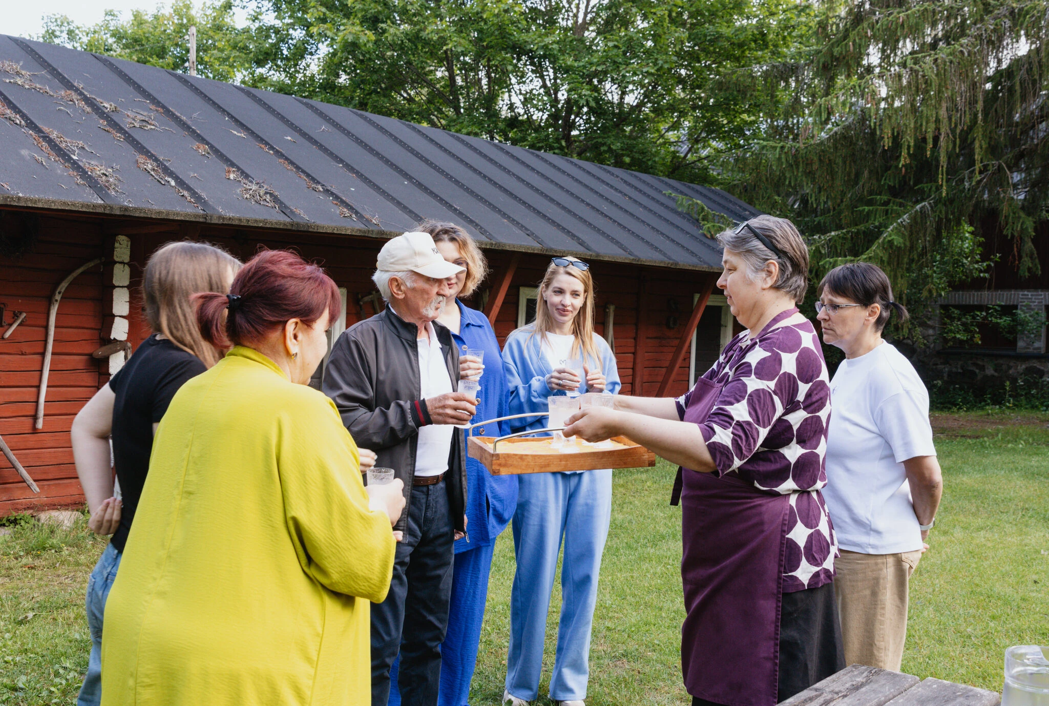 Otan sinut vastaan kodissani ravintola Niinipuun vieressä. Pihapiiri on luokiteltu perinnepihaksi. Juodaan alkoholittomat alkumaljat kelistä riippuen vaahteran alla perinnepihapiirissä tai tuvassa. Mustikkakukkopaja pidetään kodissani 1700-luvun hirsituvassa. Esiliinat tulevat talon puolesta. Tehdään yhdessä pohjataikina, näytän tapani täyttää kukot. Ohjeistan, neuvon, näytän. Juodaan teet/kahvit ja syödään yhdessä mustikkakukkoja vaniljakastikkeen kera. Saat mukaasi reseptin.