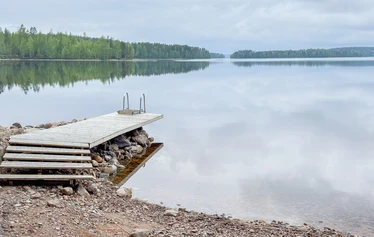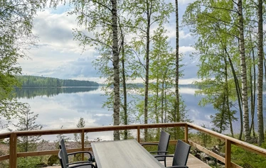 Yhteys terassille, järvinäkymä auringonlaskun suuntaan