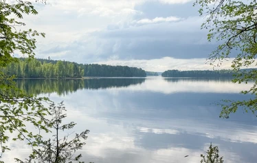 Länsiranta, järvinäkymä auringonlaskun suuntaan, hiekkapohjainen uimaranta